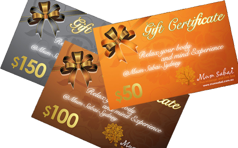 Show your gratitude or love to someone special by giving him or her the Mumsabai gift certificate. the gift of good health and relaxation. The perfect gift to give that special person for any occasion.